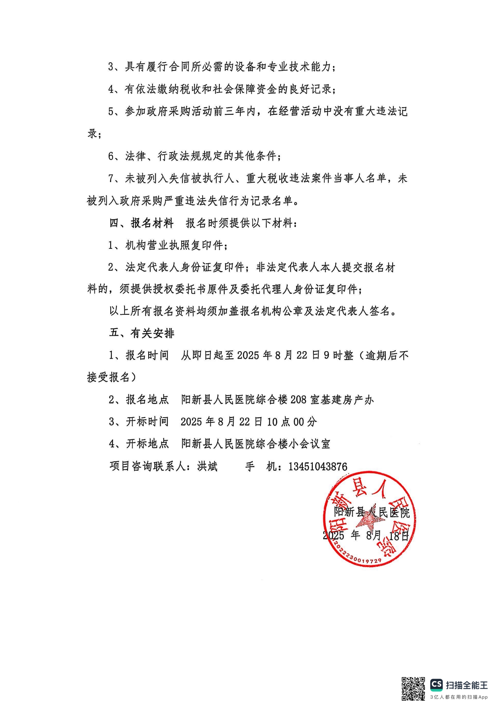 《阳新县人民医院(一院四区)干粉灭火器采购及换粉、检测项目竞争性谈判公告》