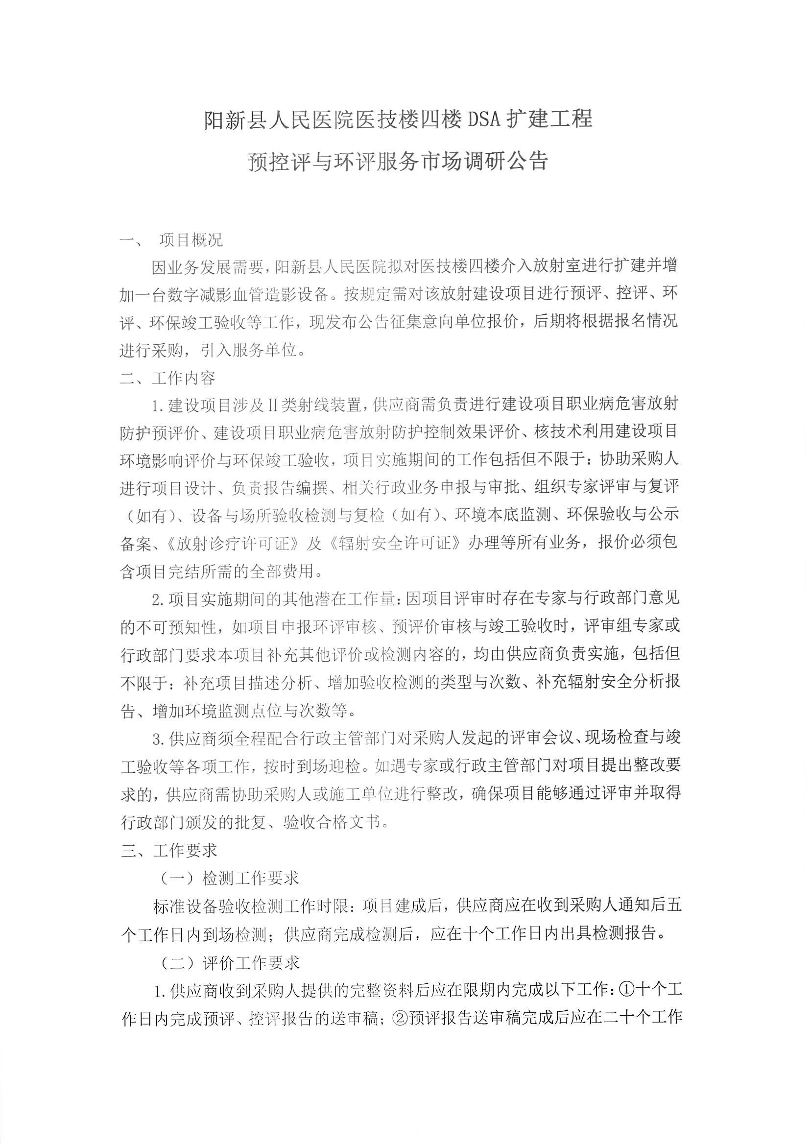 《阳新县人民医院医技楼四楼DSA扩建工程预控评预环评服务市场调研公告》