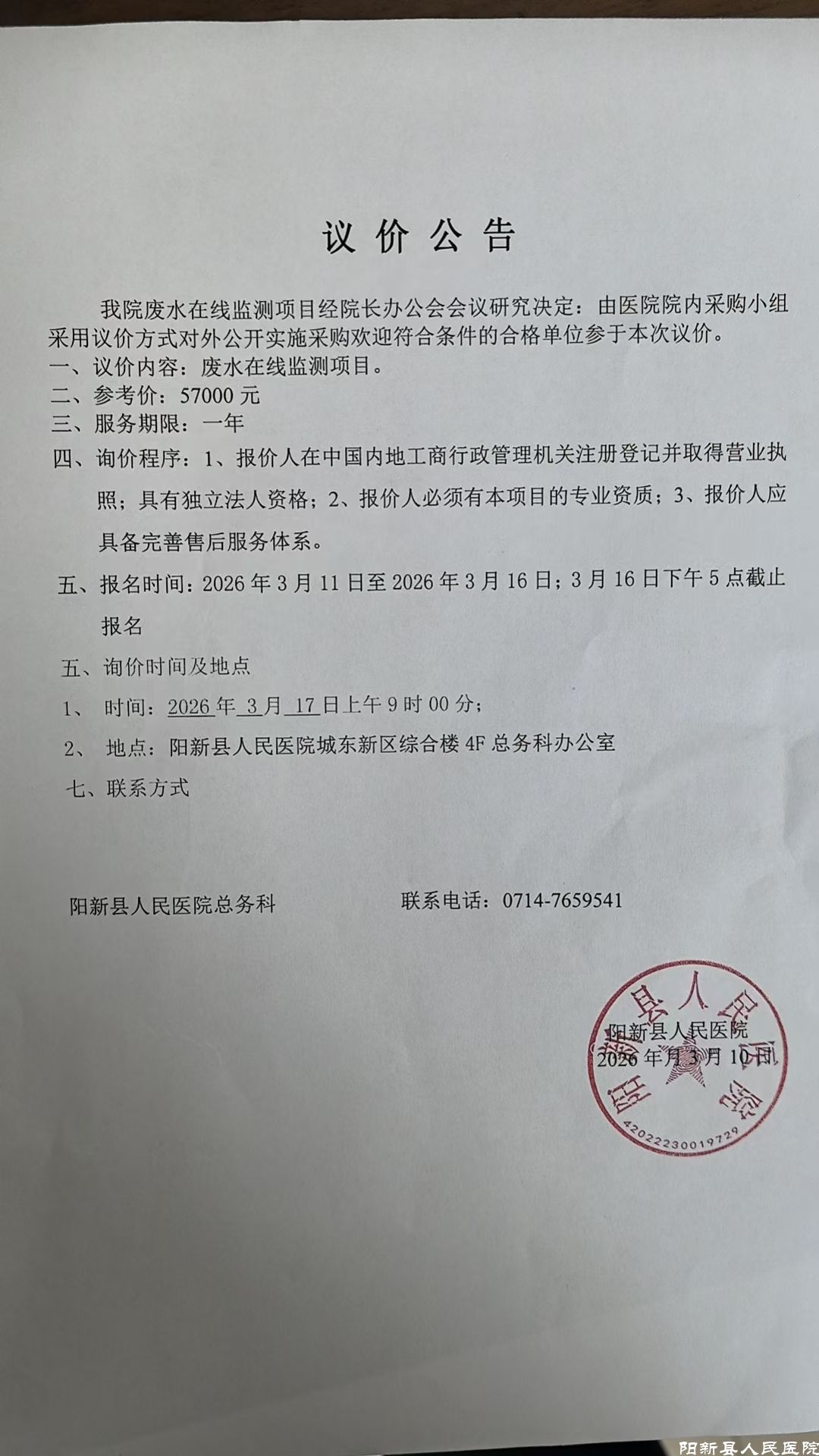 《废水在线监测项目议价公告》