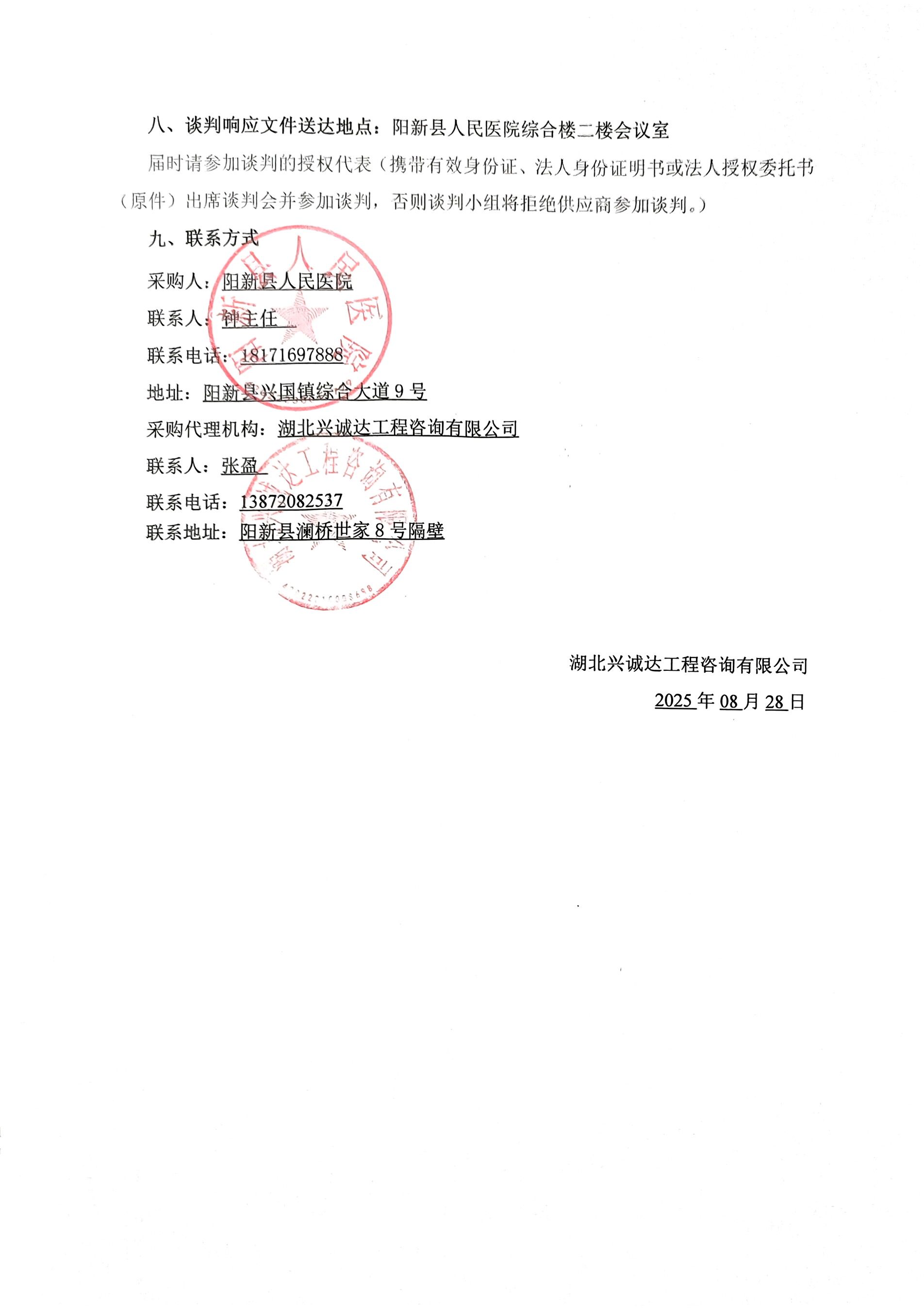 《阳新县人民医院(一院四区)干粉灭火器采购及换粉、检测项目(二次)竞争性谈判公告》