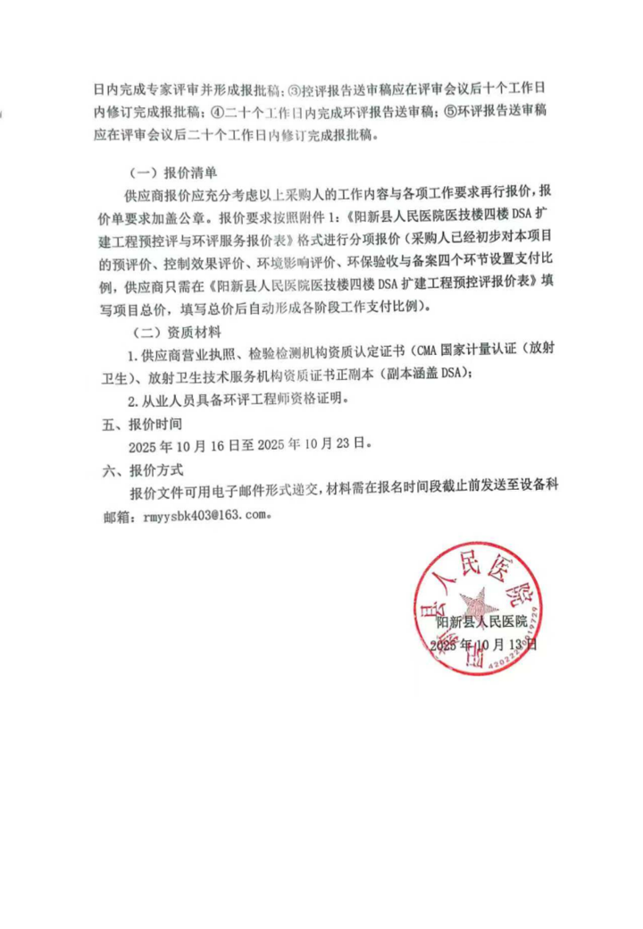 《阳新县人民医院医技楼四楼DSA扩建工程预控评预环评服务市场调研公告》