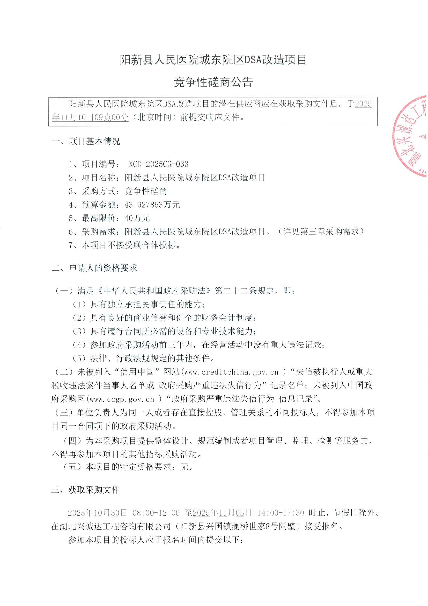 《阳新县人民医院城东院区DSA改造项目竞争性磋商公告》