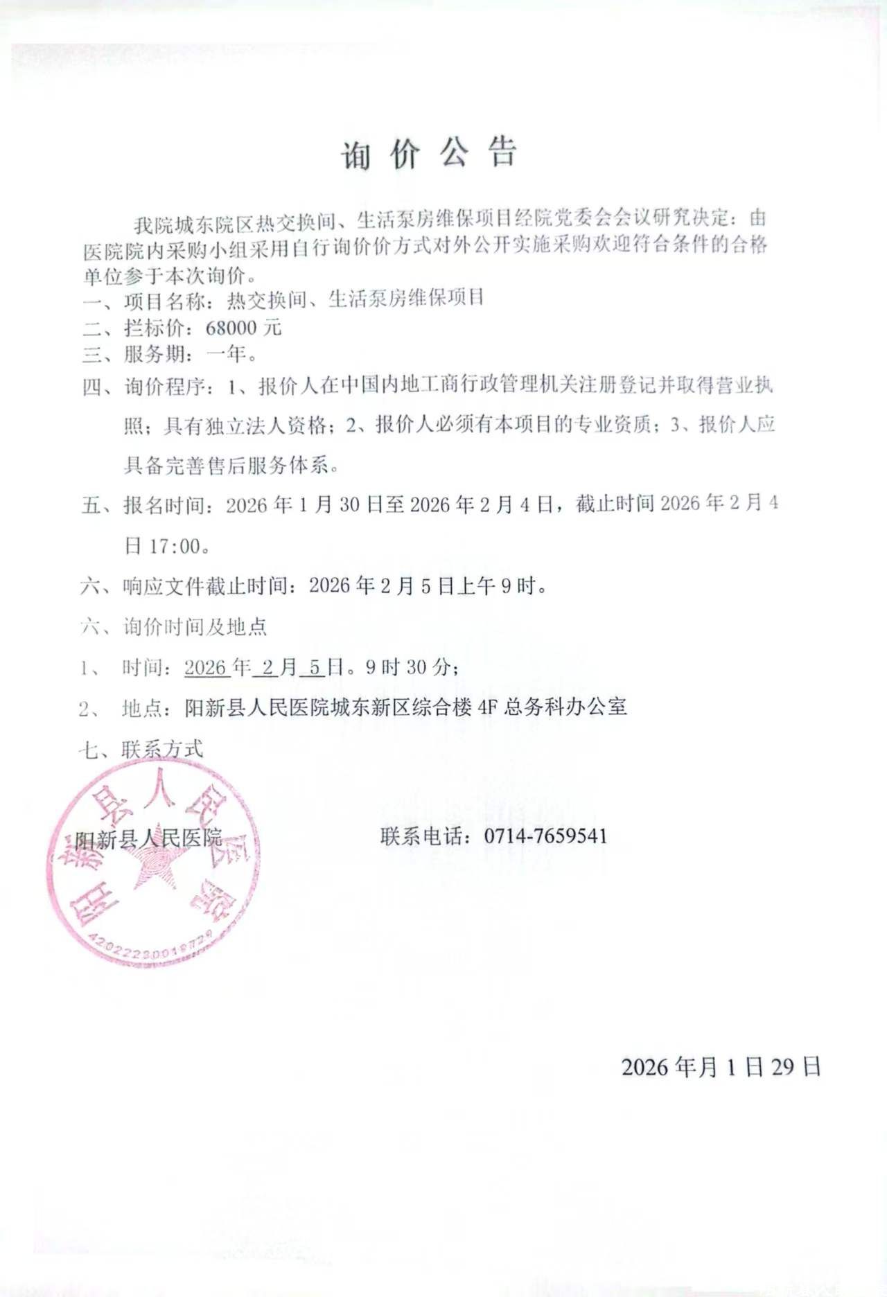 《阳新县人民医院询价公告》