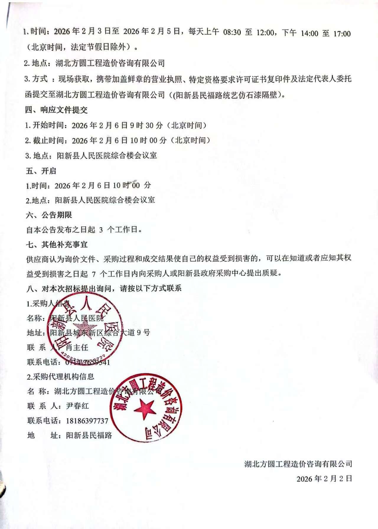 《阳新县人民医院询价公告》